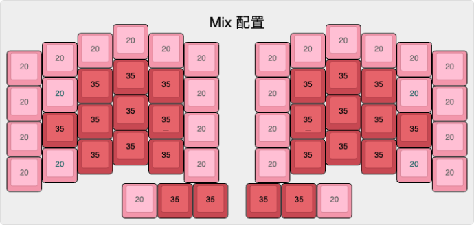 務實鍵盤的獨特之處在於其獨特的 MIX 混重配置。35克力與20克力的凱華線性矮軸,搭配出舒適可以長時間使用的配置。